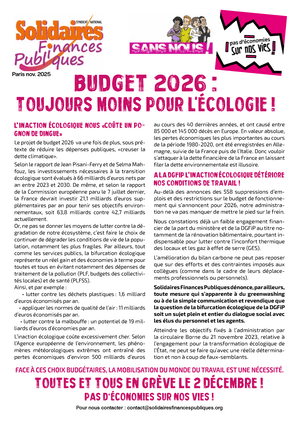 Solidaires Finances Publiques dénonce, par ailleurs, toute mesure qui s’apparente à du greenwashing ou à de la simple communication et revendique que la question de la bifurcation écologique de la DGFiP soit un sujet plein et entier du dialogue social avec les élus du personnel et les agents.